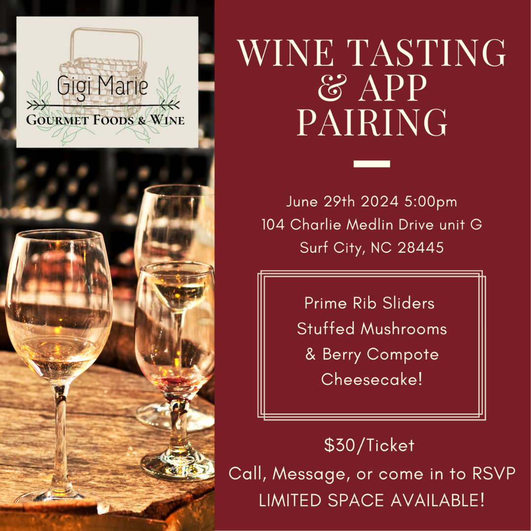 Wine Tasting and App Pairing at Gigi Marie's Gourmet Food and Wine